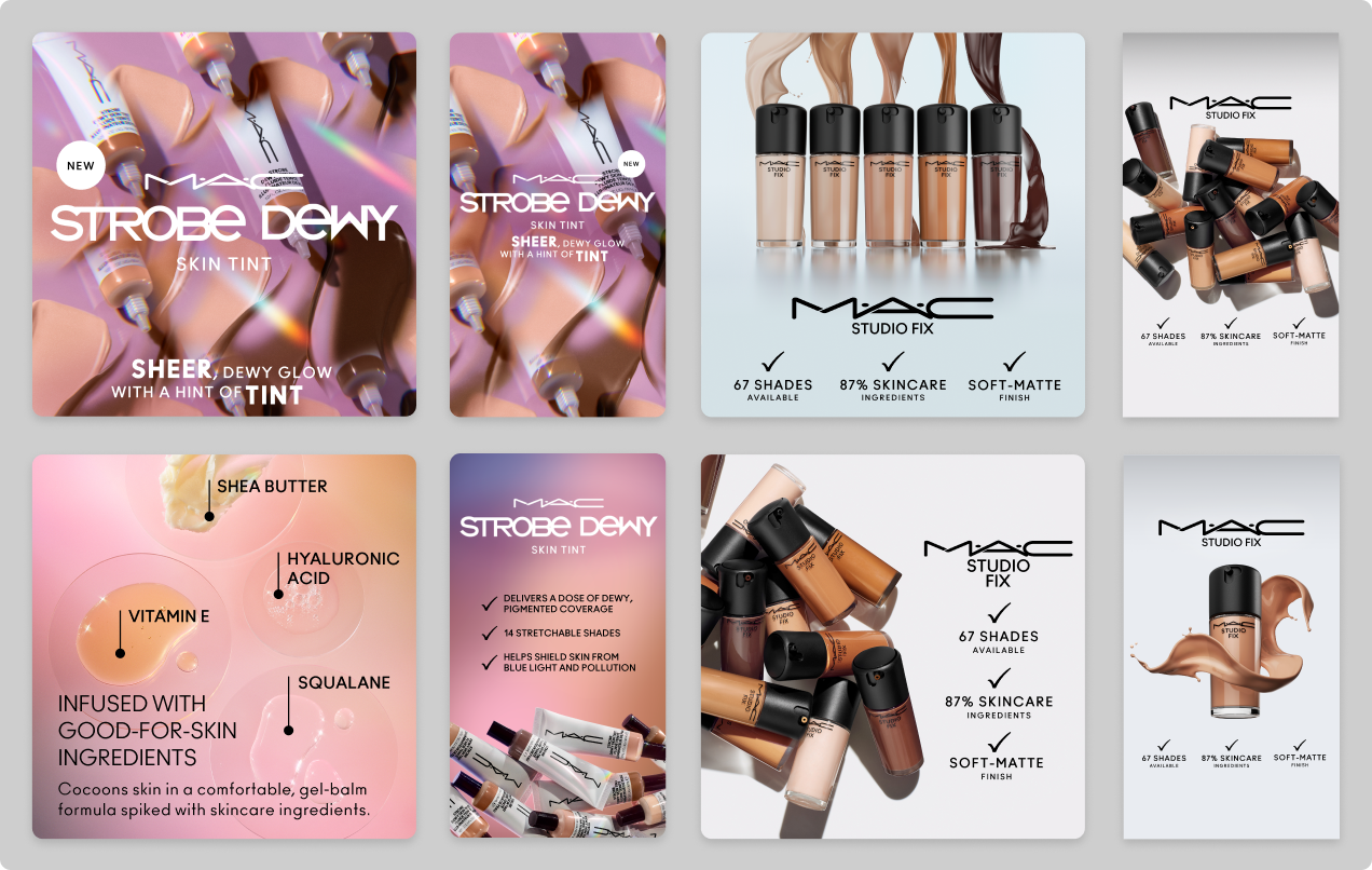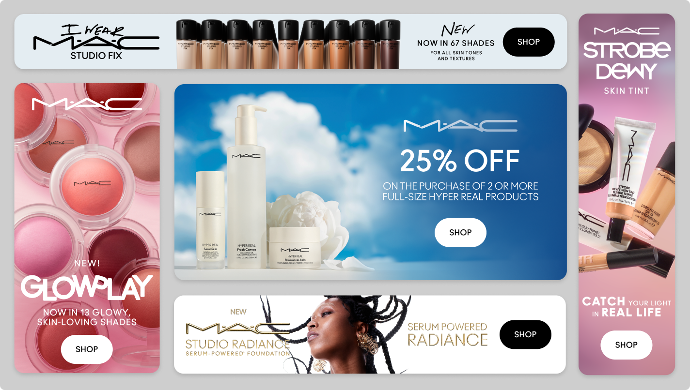 Providing Canadianized graphics through leveraging global M·A·C assets. Assisting on in-store, third-party vendors, and event signages (ranging from standardized posters, event merchandise, and novelty items). Supporting digital promotions, paid ads, social media, email campaigns, and motion graphic visuals. Credit: Some visual elements were provided by another team.